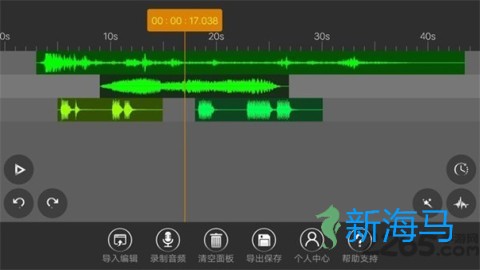 2、时间标尺:帮助用户观察音频的时长。单指拖动可进行移动,双指操作可放大或缩小;双击可使用左中右三种不同的快捷功能。
