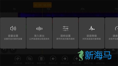 9、工具栏:根据选择不同的音频对象,可以看到不同的命令选项。