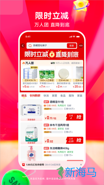 1、涵盖生活百货、美妆个护、零食等多个品类,特价商品每日更新,最高仅需9块9包邮!想不到的低价,让您迅速成为购物达人。