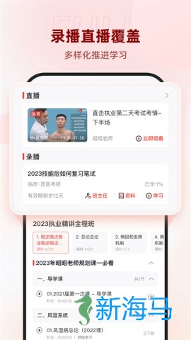 昭昭医考app最新版汇聚了丰富的课程内容和庞大的题库资源,支持用户在线观看直播课程,由经验丰富的名师进行在线教学。考生们可以参与课堂互动,有问题随时向老师提问。选择精炼的题库,每天练习有效提升,包含大量真题,让你在线自测,获取详细学习报告,做到因材施教,轻松查漏补缺。