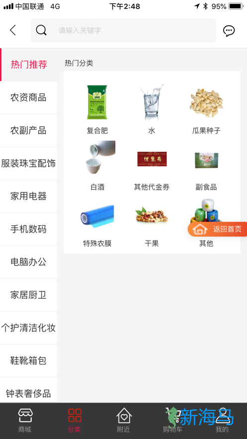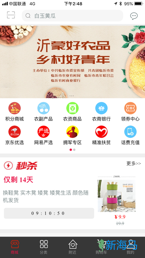 2、商城划分明晰,包含积分商城、农副产品、农资商品、服饰和珠宝等多样化商品,方便用户根据需求选购。