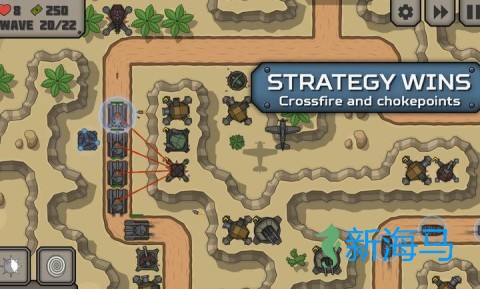 1、开局时优先在敌人必经的隘口建造机枪塔,因为它对轻型目标具有高效应对能力,能很好地抵挡前期步兵和摩托攻击。