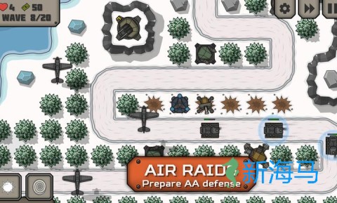 2、设有四种可升级防御塔类型,各种塔可针对不同敌人奏效,提供丰富的策略搭配机会。