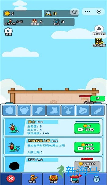 小小生存队免广告版游戏中,玩家需要招募各个时代的士兵,形成一支强大的队伍。挑战不同层数,将获得宝贵的装备和金币,这些资源将助力团队实力的提升。每一层战斗都是一次新冒险,而每次胜利都带来成就感。