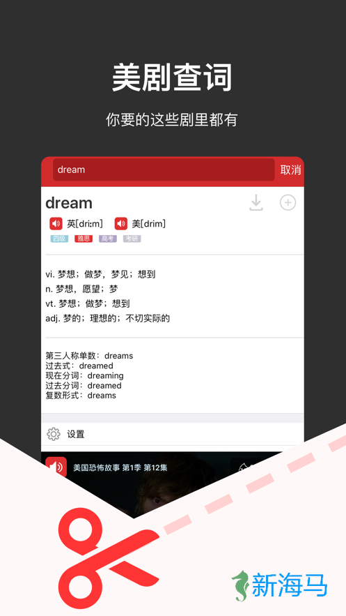 2、查看单词释义时,记得关注中文翻译、词性、例句和发音哦!
