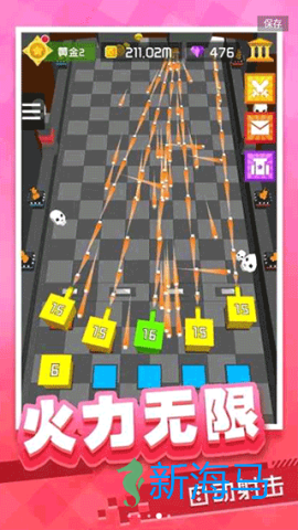 1、每击杀一个敌方方块,都会为你带来丰厚的奖励,游戏采用无尽模式,尽情挑战,尽享成就。