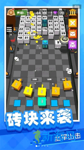 2、每个敌方方块顶部标有血量,了解敌情是制胜的关键;可以通过合成相同的炮塔,获取强力火力支持。