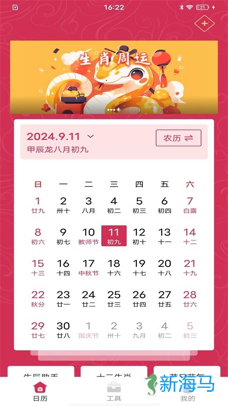 1、清晰明了的日历界面,让用户可快速浏览阳历、农历、天干地支、节日等信息;