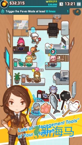 4、在老板界面为豪华办公室进行装扮,解锁各种装置需积累金币。